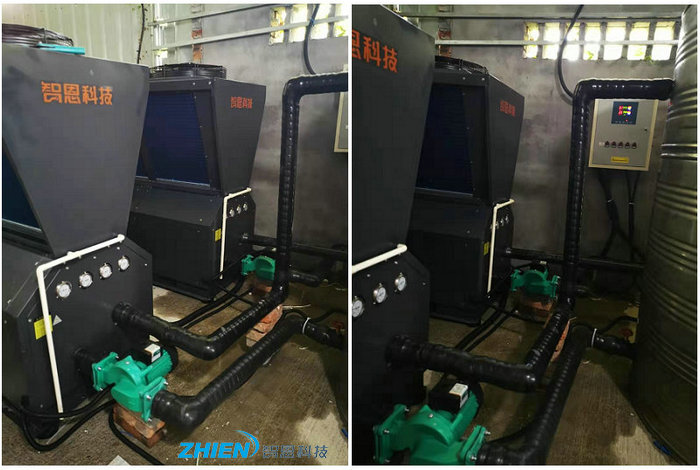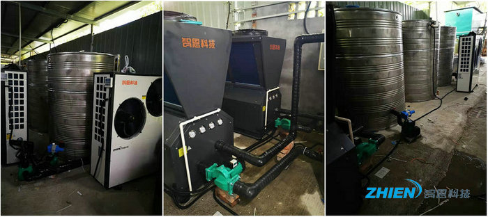寧波市巨藤陶瓷閥有限公司陶瓷閥生產熱水工程采用智恩空氣能熱泵:兩臺15P空氣能高溫機、兩臺7P空氣能冷暖機。采用水箱:2噸熱水保溫水箱、2噸冷水保溫水箱、2噸保溫水箱。