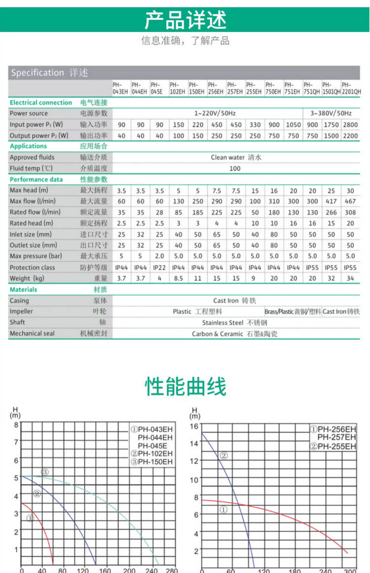 威樂熱水循環(huán)泵PH-750EH/751EH/751QH