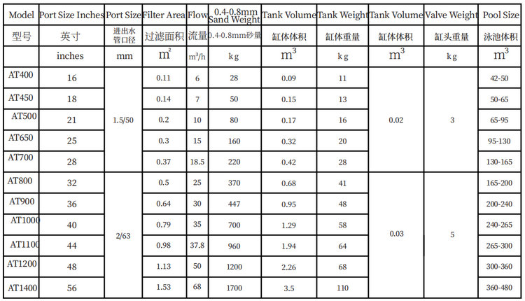 AT系列砂缸缸體采用環(huán)保優(yōu)質(zhì)的玻璃纖維作為原材料,結(jié)合手工工藝與進口機械技術(shù)加工而成,在日照,鹽水等多種工作環(huán)境下,均體現(xiàn)出良好的產(chǎn)品性能。360度旋轉(zhuǎn)頂閥(六位)設(shè)計,安裝簡易,方便使用。功能:正常過濾、反沖洗(排出過濾器內(nèi)積蓄的污垢)、反沖洗后排出水管內(nèi)剩余污垢,不經(jīng)過濾直接排水、不經(jīng)過濾循環(huán)。